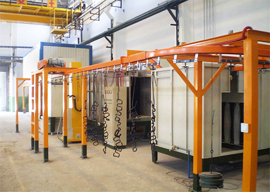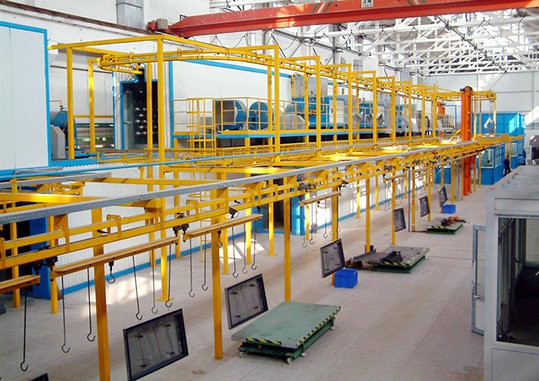 涂裝流水線的七大組成部分主要包括:前處理設(shè)備、噴粉系統(tǒng)、噴漆設(shè)備、烘爐、熱源系統(tǒng)、電控系統(tǒng)、懸掛輸送鏈等。